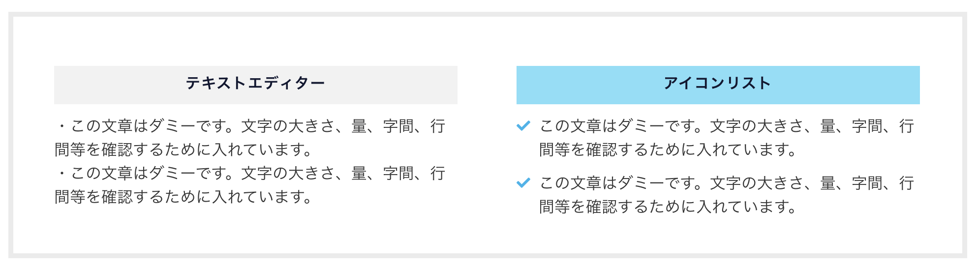 ⚫︎ デザインが単調: アイコンがテキストと同じ色・サイズになるため、重要なポイントが目立ちません。